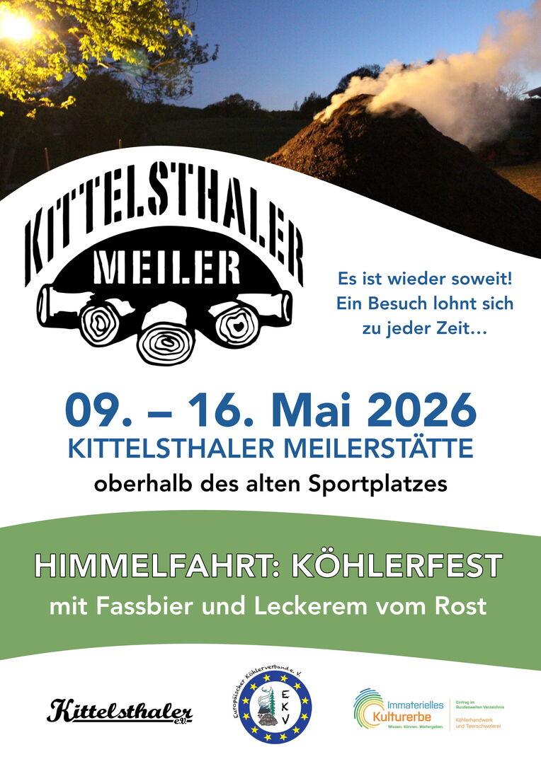 Zu Himmelfahrt findet das Köhlerfest statt, mit Fassbier und Leckerem vom Rost.