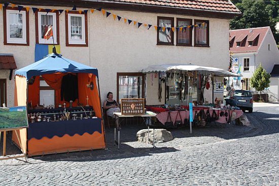 Die Vorbereitungen zum Markt begannen schon am Freitag. Überall in der Stadt herrschte reges Treiben, die ersten Marktstände kamen und auf der Bühne gab es dabei schon ein Programm. Das Hornquartett "Südwest-Thüringen" unter der Leitung von Klaus Seyfahrt, der Jugenclub "Freetime" und die Singegruppe von "Alt Ruhla" zeigten ein buntes Programm.
