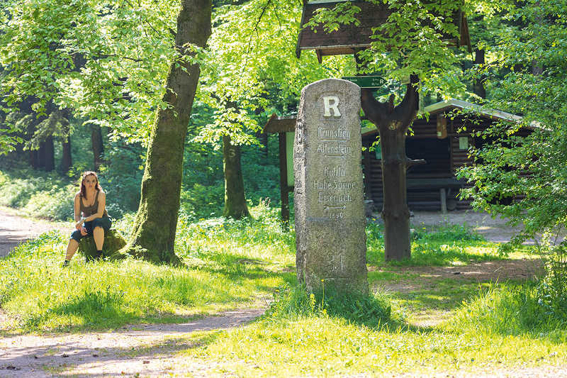 Heute geht es zum Dreiherrenstein und danach erreichen Sie die Ebertswiese, eine der schönsten Bergwiesen mit nahe gelegenen Bergseen. Die Tour hat heute weniger steile Anstiege. Sie kommen an der Großen Ausspanne, Krämerrod, Wachsenrasen bis nach Oberhof. In der Nähe erwartet Sie der Grenzadler. Es ist ein jahrhundertealter Grenzstein.