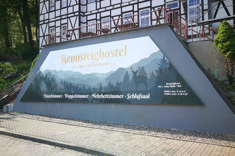 Das Rennsteighostel ist die ideale Unterkunft für kurz- und langfristige Aufenthalte in Ruhla. Für Gäste stehen 68 Betten in Einzel-, Doppel- und Mehrbettzimmern zur Verfügung. Jedes Zimmer ist zusätzlich mit einem kleinen Kühlschrank sowie einen Fernseher ausgestattet. Auf jeder Etage befindet sich eine Gemeinschaftsküche sowie Gemeinschaftsduschen. Eine Waschmaschine und ein Trockner stehen gegen Entgelt auch zur Verfügung. Im Außenbereich befindet sich eine möblierte Terrasse. Parkplätze sowie eine Haltestelle für öffentliche Verkehrsmittel befinden sich direkt vor dem Haus.